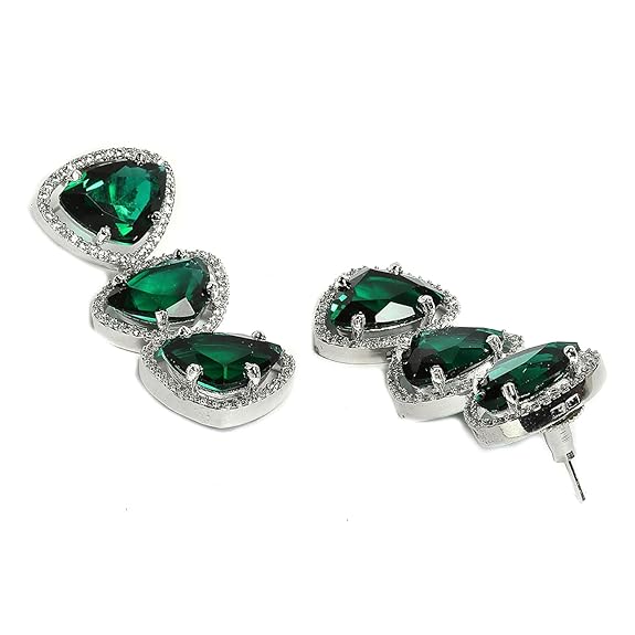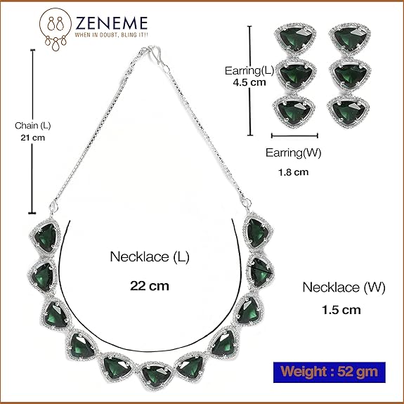 ZENEME Rhodium Plated Silver Toned Triangular Shaped American Diamond Studded Jewellery Set For Women and Girl 1,503.88 Save:377.00(20%)